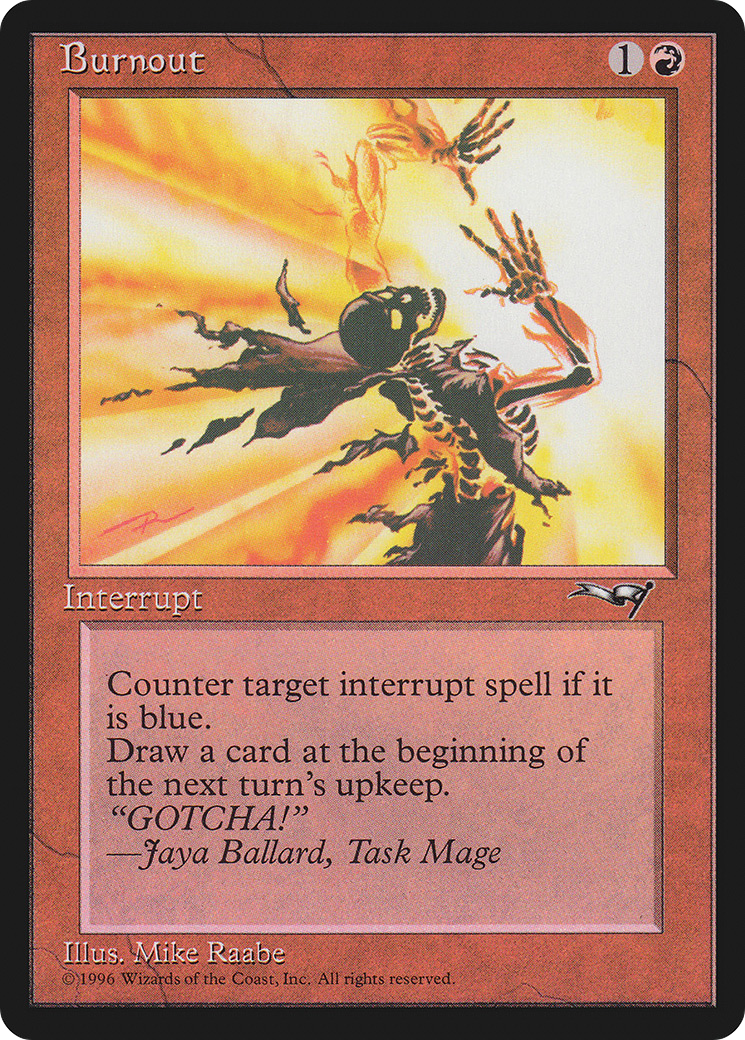 Counter target interrupt spell if it is blue.Draw a card at the beginning of the next turn's upkeep.